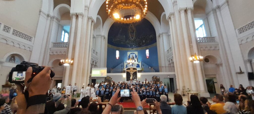 Durante la celebración, 60 niños del Instituto Nuestra Señora de Nueva Pompeya recibieron a Jesús por primera vez.