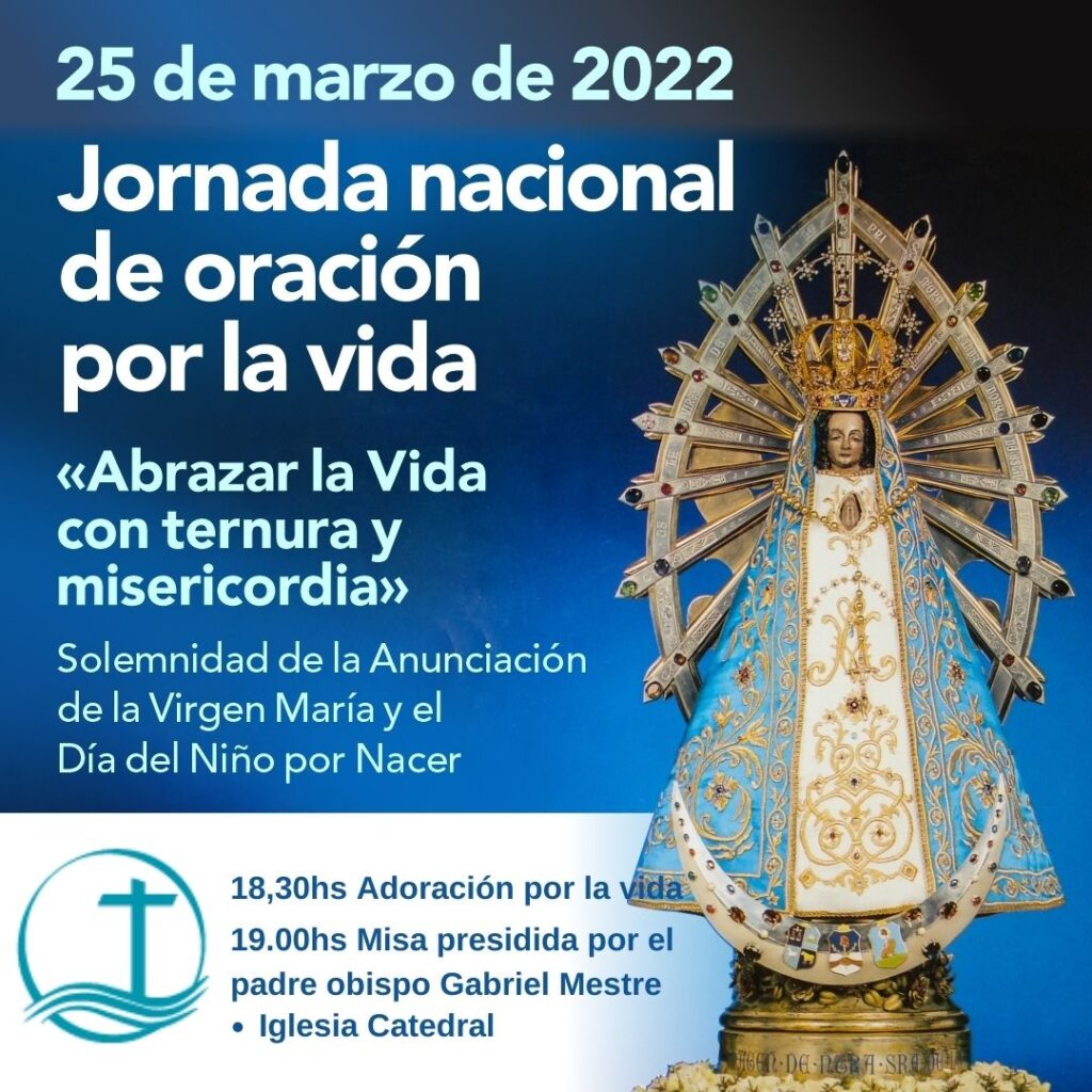 El viernes próximo a las 18,30hs en la Iglesia Catedral, se llevará a cabo una jornada de oración por la vida bajo el lema “Abrazar la Vida con ternura y misericordia”. Luego el padre obispo presidirá a las 19hs la Eucaristía en la Solemnidad de la Anunciación a la Virgen María y el Día del Niño por Nacer, en unidad con el llamado del Episcopado a toda la Iglesia de Argentina.