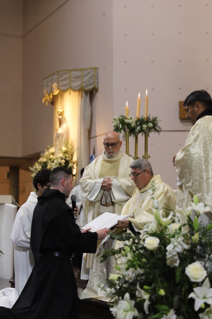 En la homilía pronunciada por fray Medina, el Vicario Provincial abordó la cuestión de la vocación como el llamado que sigue haciendo Dios a seguirlo para encontrar una felicidad plena que solo se encuentra en la Persona de Jesús. Destacó que diálogo requiere una respuesta de fe, llena de confianza capaz de renunciar incluso a bienes lícitos porque “solo Jesús puede decirnos que ‘quien beba del agua que Yo le daré, jamás tendrá sed’”.