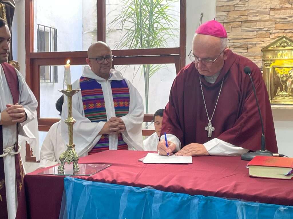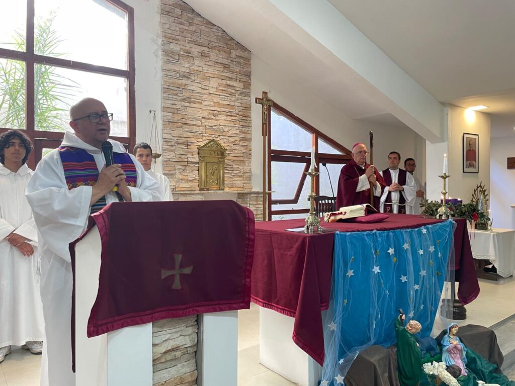 Monseñor Giobando agradeció la disponibilidad del flamante párroco, y al referirse al tercer domingo de Adviento –o domingo de Gaudete- que se celebraba ese día, animó a la comunidad a vivir cotidianamente la alegría y a mantener viva la esperanza.
