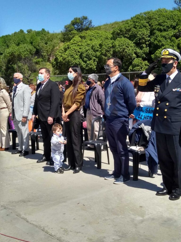 El monumento fue inaugurado en un marco de respeto por parte de todo el público que participó de la ceremonia en el acceso a la Base Naval de Mar del Plata en un espacio especialmente asignado para recordar la memoria de los 44 héroes.