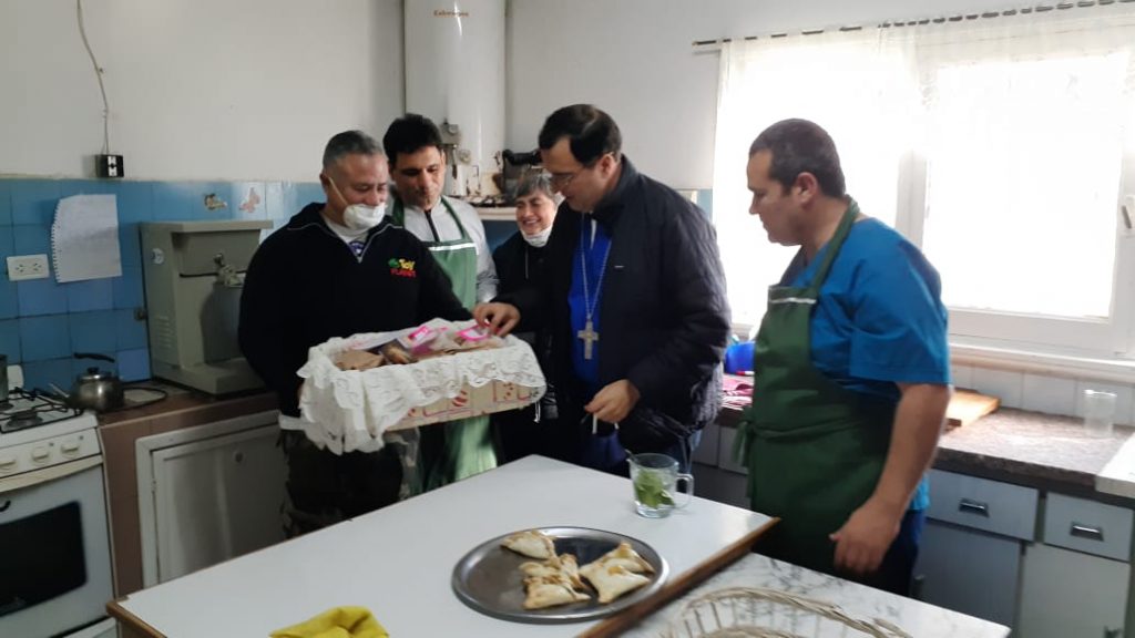 El padre obispo Gabriel visitó, dialogó y acompañó a los jóvenes con la bendición de todas las tareas que se realizan en la Casa y que con tanta misericordia llevan adelante en ese lugar.