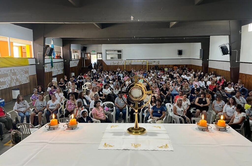 Catequistas de la diócesis colmaron el salón de actos del Colegio Jesús Obrero, de Mar del Plata, donde participaron del retiro organizado por el Secretariado de Catequesis Renovada.
