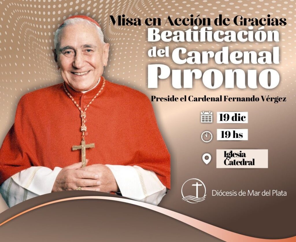 La Iglesia Católica en Argentina se prepara con mucha alegría para la beatificación de uno de los obispos más distinguidos de su historia: el Cardenal Eduardo Pironio, que se celebrará el 16 de diciembre en la Basílica y Santuario Nacional de Nuestra Señora de Luján, en la provincia de Buenos Aires. Celebración en Mar del Plata el 19 de diciembre.