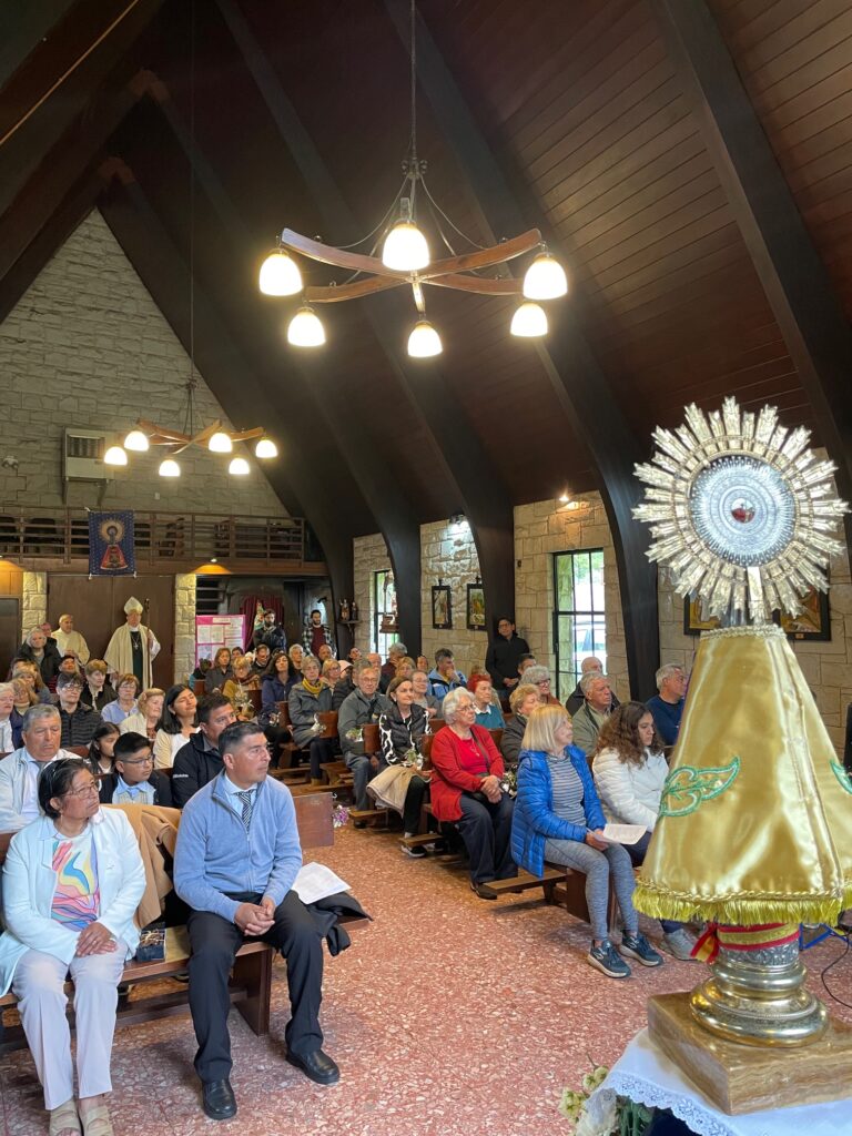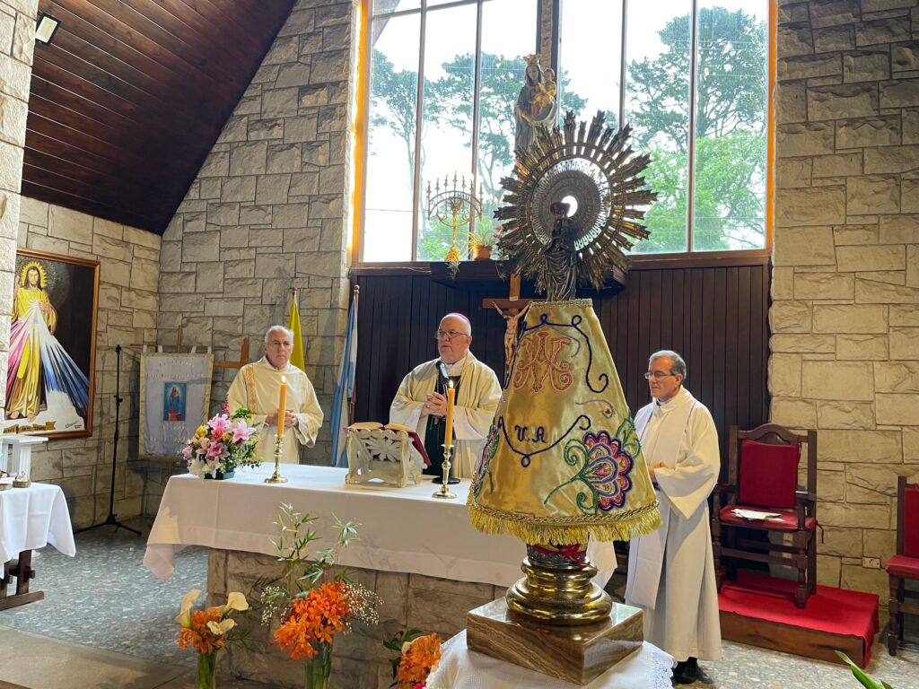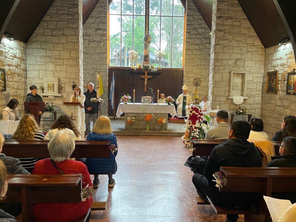 Haciendo referencia a la Virgen del Pilar, patrona de la parroquia, Mons. Giobando recordó la historia de la evangelización: “Celebramos esta fiesta tan linda de la Virgen del Pilar. Así como la Virgen nos acompañó desde la primera evangelización de estas tierras, queremos sostenernos en Jesús y ser agradecidos en Él. Que la Virgen nos enseñe a dar gracias y a llevar a Jesús en nuestro corazón.”