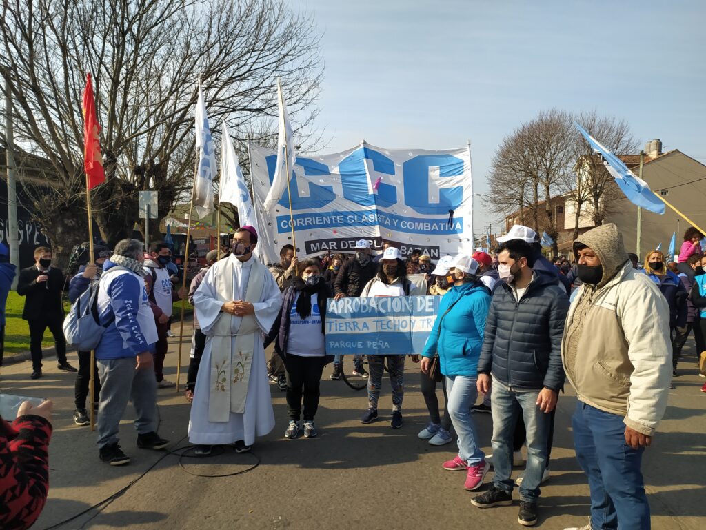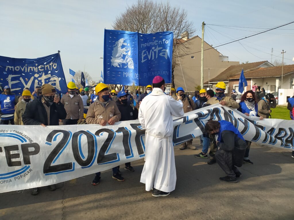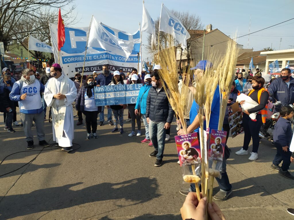 En oportunidad de la nutrida marcha de todas las organizaciones sociales, el padre obispo Gabriel salió al encuentro en Nasser y Colon de los miles de personas que acudieron al pedido de pan y trabajo junto a sus dirigentes, los referentes políticos de distintos particos y de organizaciones sindicales. Todos al unísono cantaban pidiendo por pan y trabajo en consonancia con esta Fiesta de San Cayetano diferente.