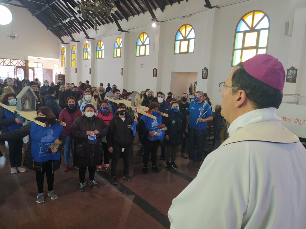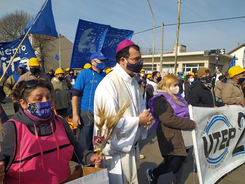 Luego, y en estricto protocolo, el obispo encabezando una pequeña caravana con referentes de cada organización social, visitaron el Santuario para pedir por pan y trabajo. Mestre bendijo a los presentes en medio de un respetuoso distanciamiento sanitario.