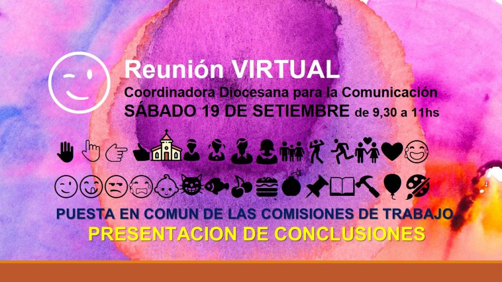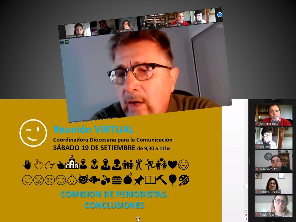 Unas 70 de personas relacionadas con las diferentes realidades en la diócesis de Mar del Plata se congregaron este sábado en esta 4ta. Reunión Virtual de Comunicación que tuvo el objetivo de conocer las conclusiones de las COMISIONES SECTORIALES y sus propuestas para profundizar el trabajo comunicacional en la diócesis.