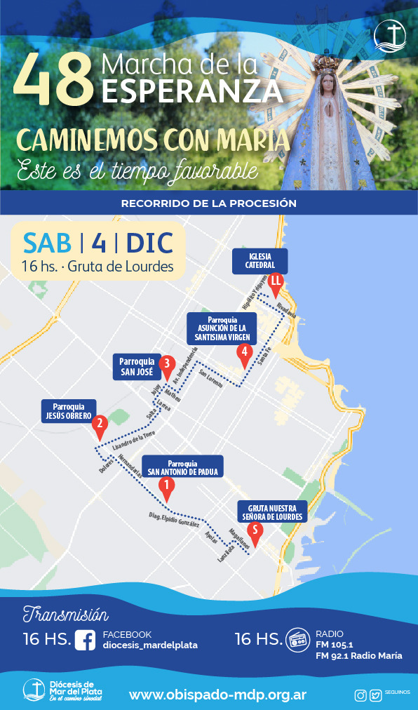 El Obispo de Mar del Plata, Gabriel Mestre, formuló una invitación pública para vivir la 48 Marcha de la Esperanza, este sábado junto a la Virgen. “Caminemos junto a María, este es el tiempo favorable, con la compañía de la Virgen todo se puede”, dijo el padre obispo en la rueda de prensa.