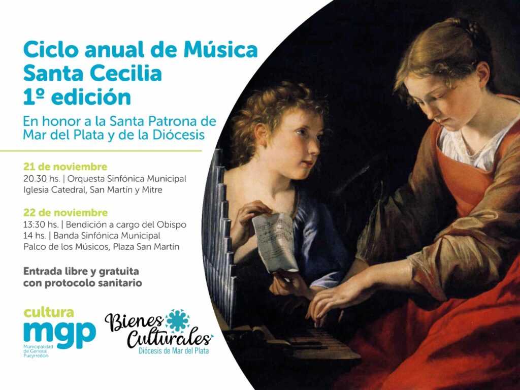 La Comisión Diocesana de Bienes Culturales del Obispado de Mar del Plata, en el marco de la conmemoración de Santa Cecilia, Patrona de la ciudad y de la Diócesis de Mar del Plata, invita este domingo al 1º Ciclo Musical Santa Cecilia, coorganizado con la Secretaría de Cultura de la Municipalidad de Gral. Pueyrredon.