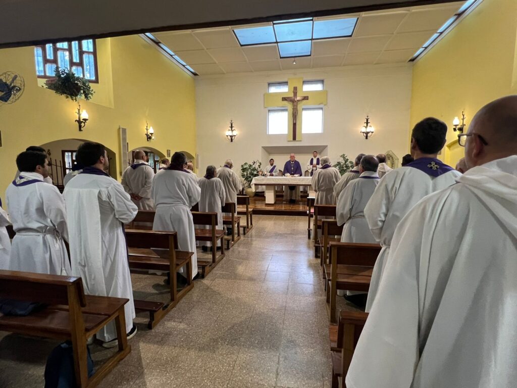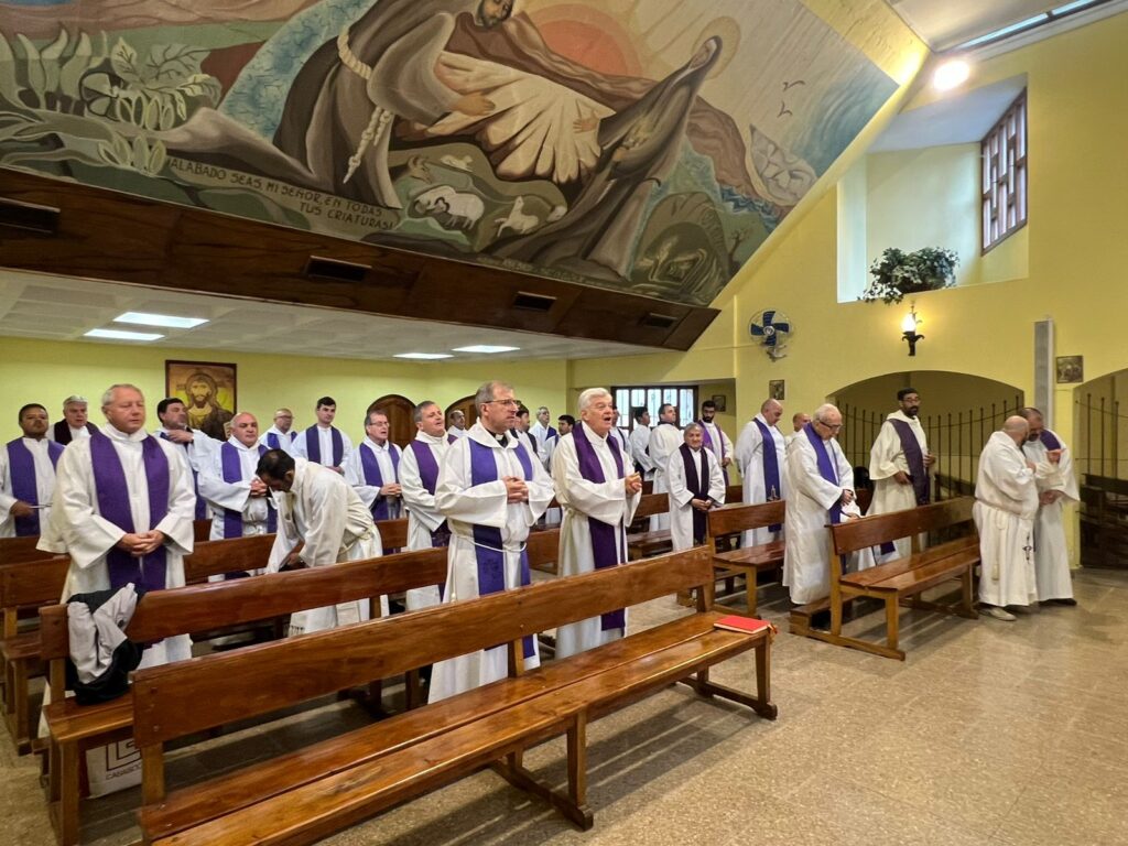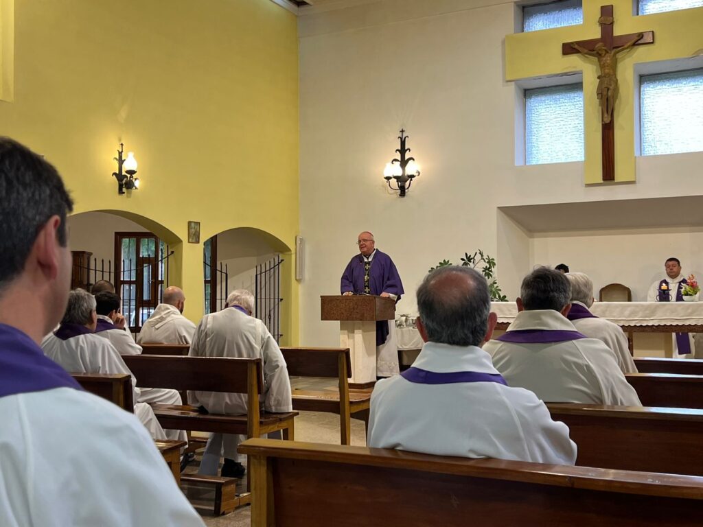 En la Casa de Ejercicios San Francisco y Santa Clara, en el Bosque Peralta Ramos, sacerdotes diocesanos y religiosos participaron este lunes 1 de diciembre junto al obispo diocesano, monseñor Ernesto Giobando SJ, de la tradicional jornada de oración y espiritualidad de Adviento.