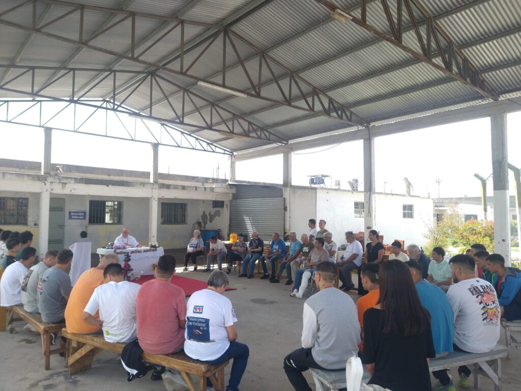 El pasado martes tuvo lugar la celebración en la UP 15, donde estuvo acompañado por el capellán de la Unidad, presbítero Sebastián Vercellone, y voluntarios de la Pastoral Carcelaria, que visitan regularmente a quienes allí se encuentran alojados. Se encontraban presentes el director de la Unidad 15, Argentino Rafael Gerli, y el subdirector, Francisco Lapera. Allí, personas privadas de su libertad participaron de la celebración y recibieron de parte de monseñor Giobando el mensaje de esperanza propio de la Navidad.