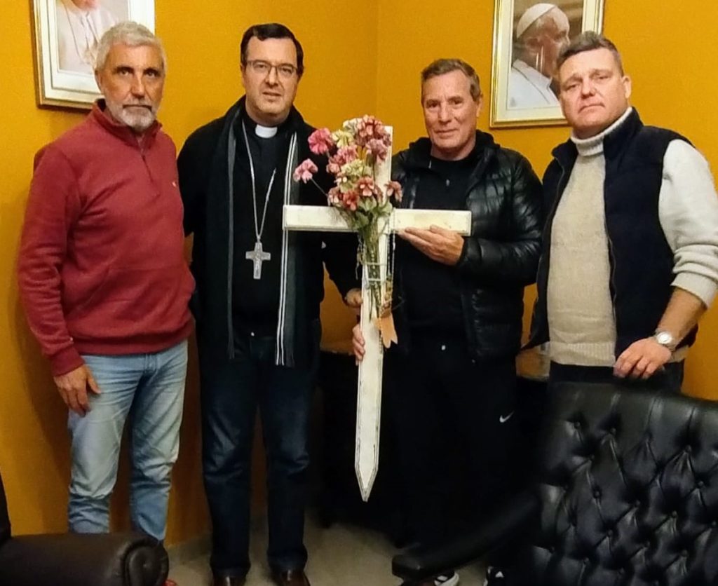 El obispo Gabriel Mestre recibió a los miembros de la fundación No Me Olvides, que tiene como finalidad mantener viva la memoria de Malvinas. Los miembros de la Fundación, Julio Aro, Gastón Villatoro y Gustavo Cardinalli le hicieron conocer al obispo los avances en el proyecto de construcción en el sur de nuestra ciudad de un Memorial como réplica del cementerio de Puerto Darwin de Malvinas.