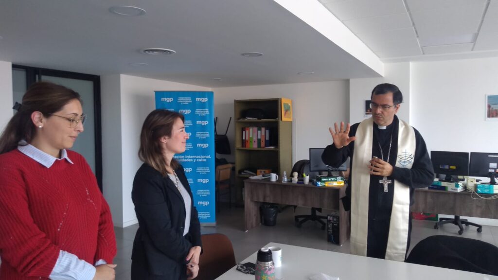 Durante su visita, el Padre Obispo pudo interiorizarse acabadamente del trabajo que la Dirección General realiza en el acompañamiento a los distintos credos y entidades religiosas de la ciudad.