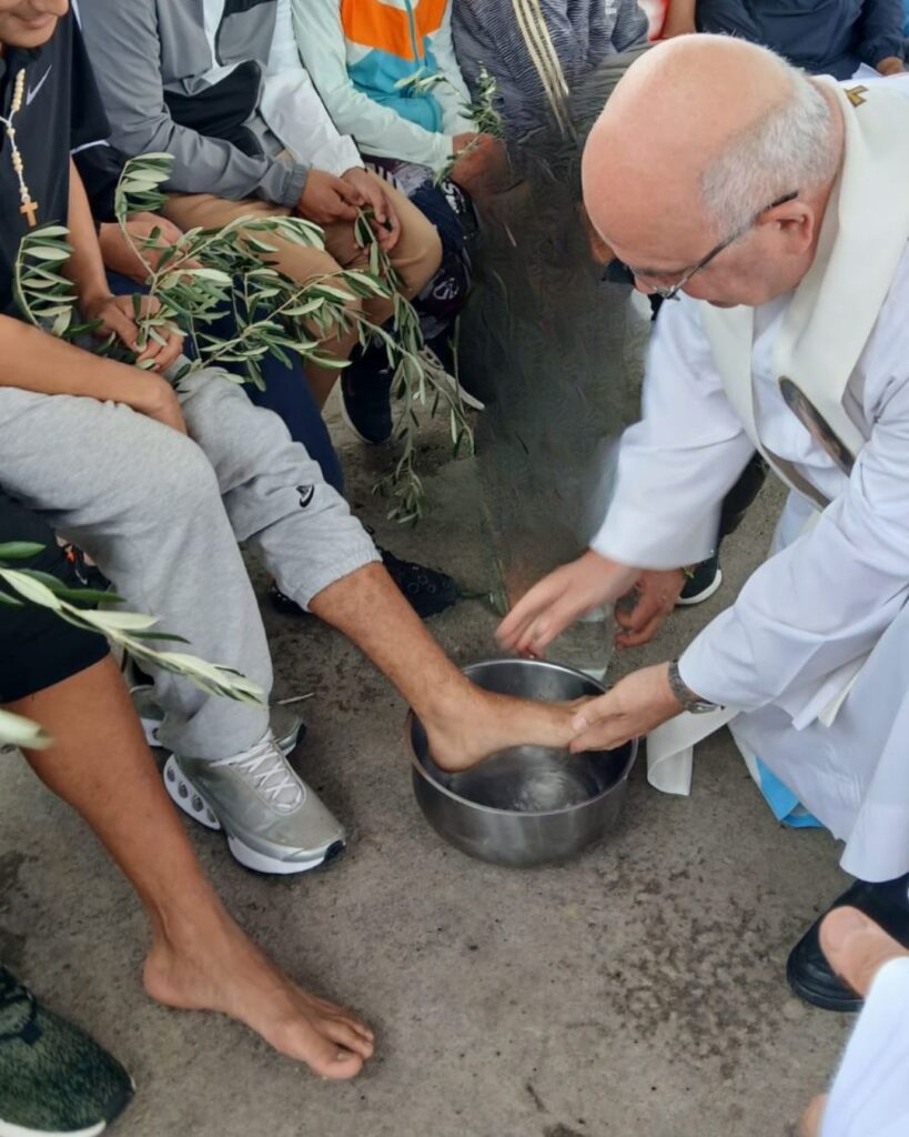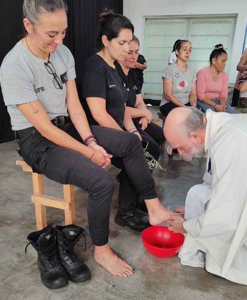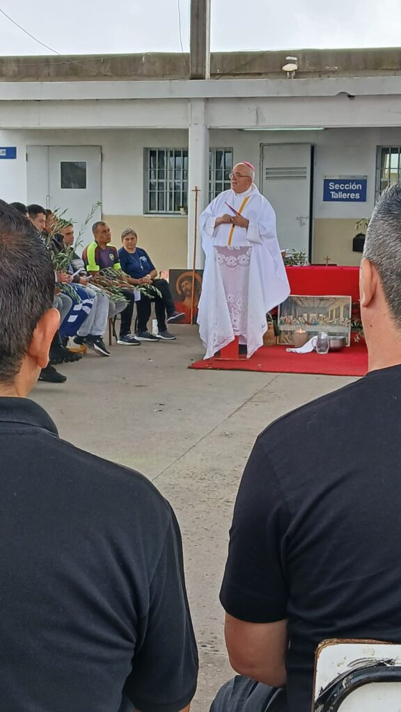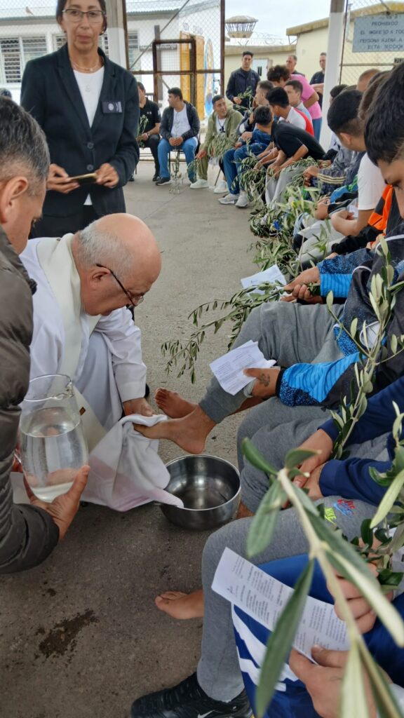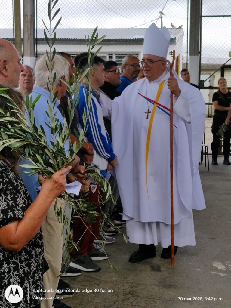 En el marco de la Semana Santa, el Obispo presidió la Eucaristía, y llevó el mensaje de la Semana Santa realizando además los gestos propios de la liturgia de esos días. En ese contexto, bendijo los ramos y repitió el gesto de Jesús en la Última Cena, lavando los pies a varios internos y a personal penitenciario.
