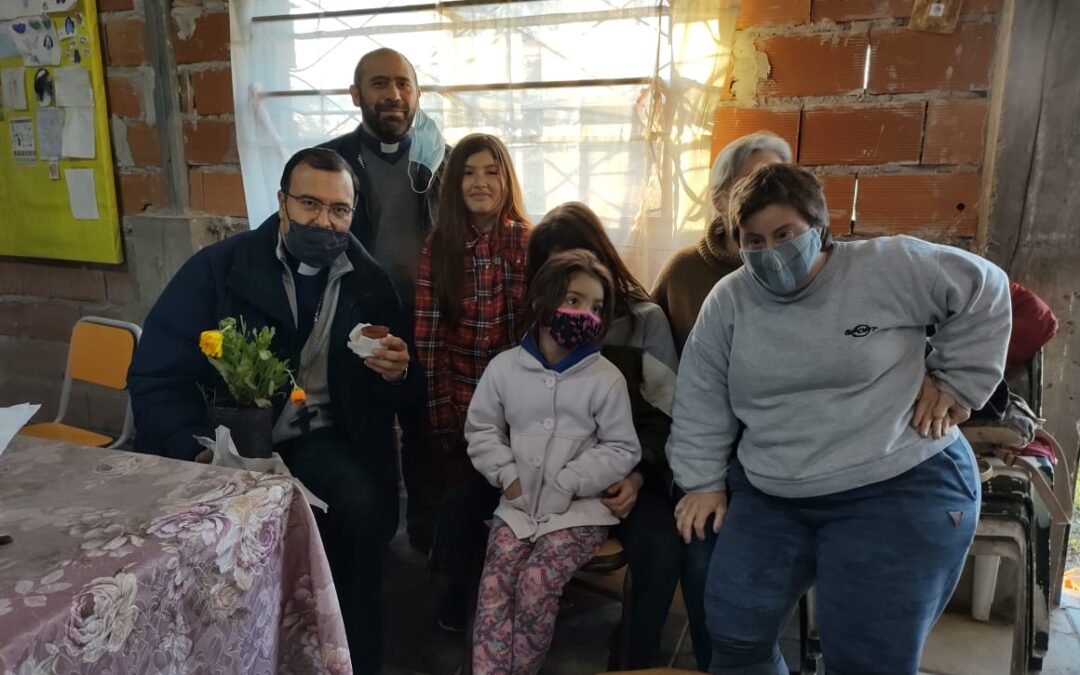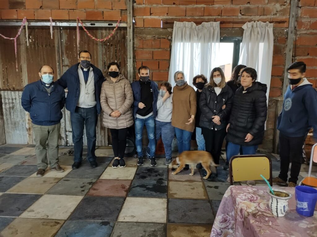 El padre obispo Gabriel Mestre visitó en Coronel Vidal la parroquia Inmaculada Concepción y el Galpón de Teresa junto al párroco P Alejo Contini y los servidores y operadores que allí trabajan.