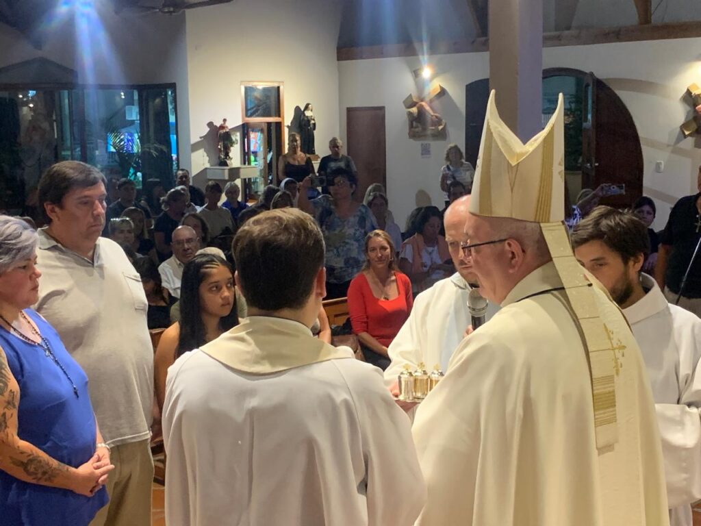 En una Misa presidida este lunes 24 por el obispo Ernesto Giobando sj., el padre Tomás asumió como párroco de la Inmaculada Concepción, en la localidad de Villa Gesell. La Misa fue concelebrada por varios sacerdotes -entre ellos el párroco anterior padre Pablo Bosisio- mientras que numerosos fieles colmaron el templo y acompañaron de esta manera la asunción de su nuevo pastor. El intendente de ese distrito, Gustavo Barrera, participó también de la celebración.