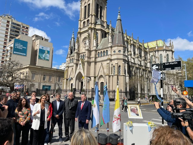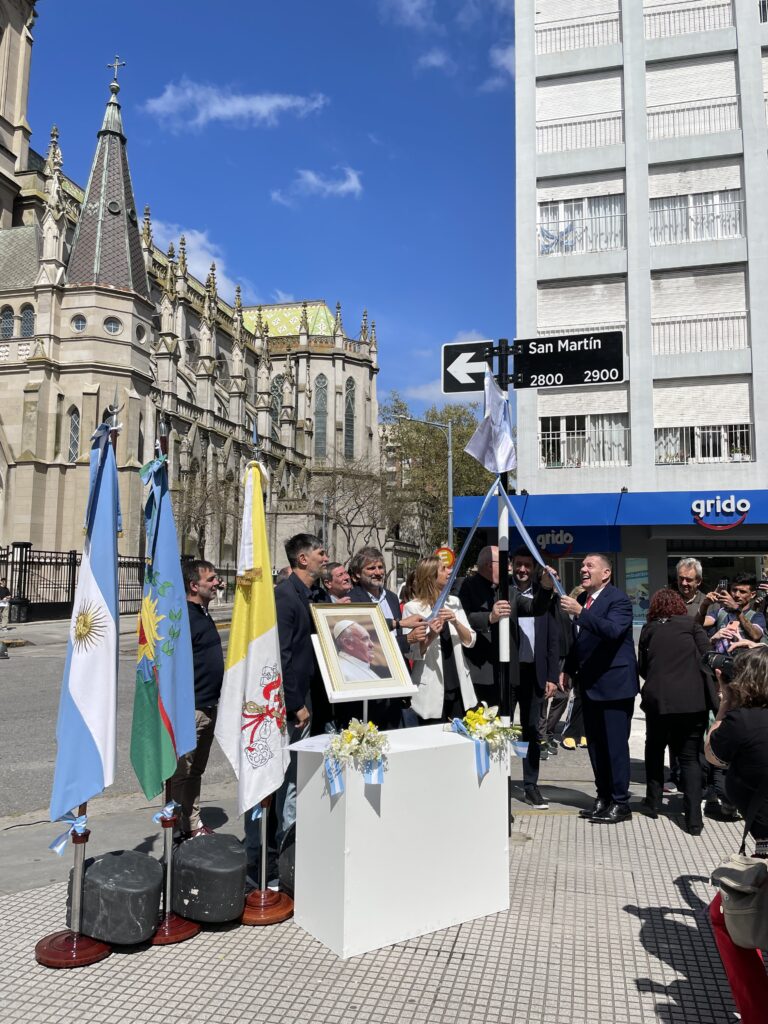 En la mañana de este viernes 3 de octubre, dos cuadras de la calle Mitre, junto a la Catedral y cruzando la Plaza San Martín, recibieron el nombre de “Papa Francisco”, en un acto organizado por el Honorable Concejo Deliberante, propulsor de esta iniciativa. Estuvieron presentes la presidenta del Concejo, Marina Sánchez Herrero; el Intendente Guillermo Montenegro; concejales y legisladores provinciales y nacionales de distintos bloques políticos; autoridades municipales y representantes del cuerpo consular. Por parte de la diócesis participaron el obispo diocesano, monseñor Ernesto Giobando sj y el vicario general, presbítero Hernán David, entre otros representantes eclesiásticos.