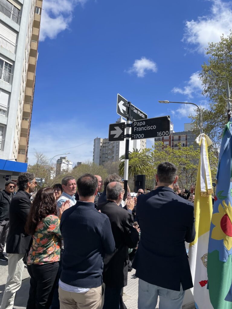 Seguidamente el obispo diocesano destacó que “Francisco, como jesuita, estuvo en la trinchera, peleando un combate en que a veces se sentía muy solo, pero hoy creo que los argentinos lo acompañamos. Aunque no nos vino a visitar como Papa, nos está habitando a todos con su presencia después de haber muerto. Creo que es una visita para siempre, no por unos días” y pidió que “esta calle sea también un recuerdo, la memoria de lo que hizo el Papa”.