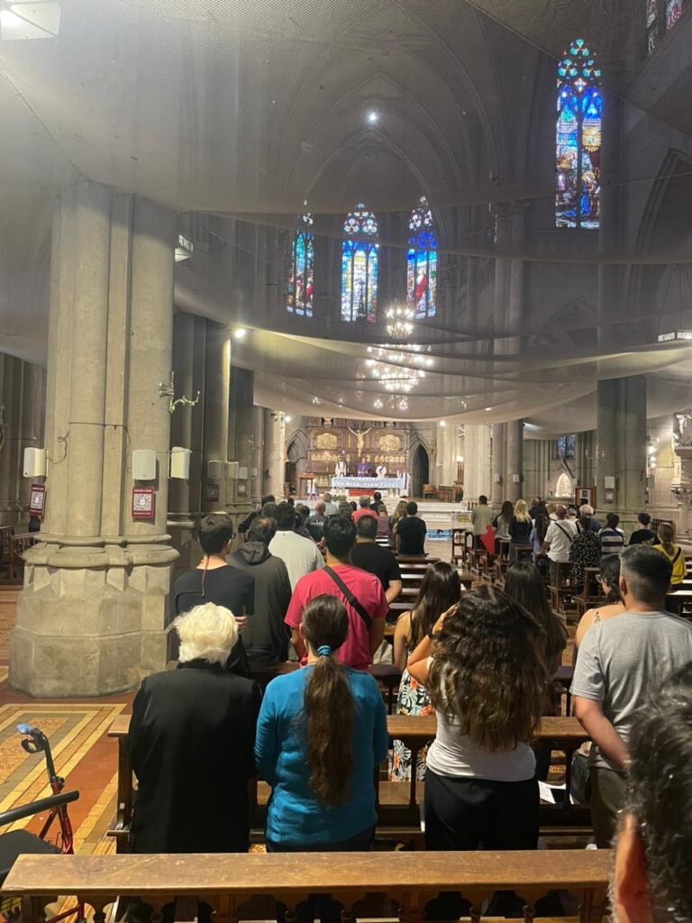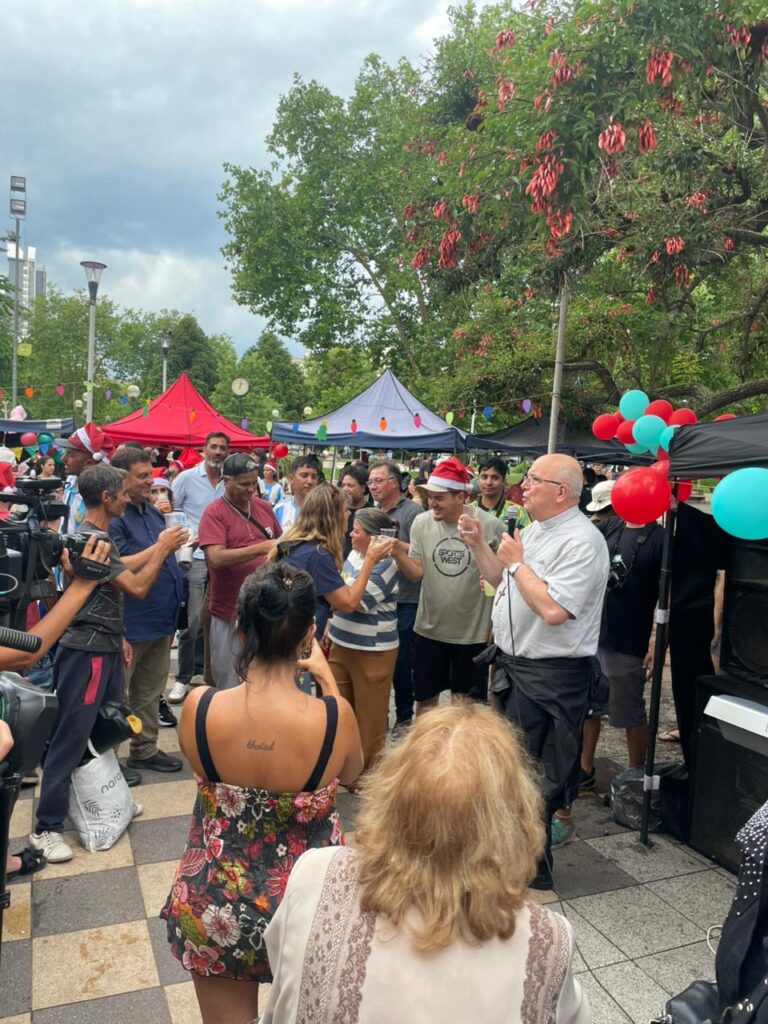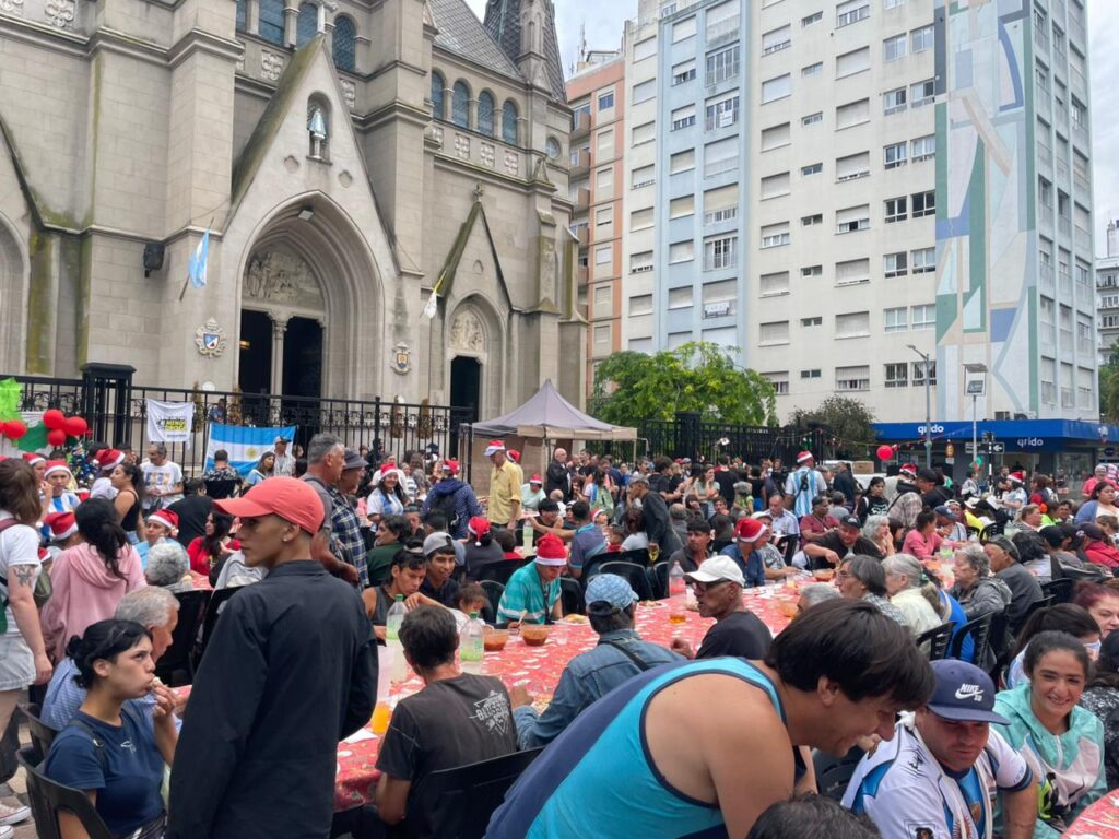 El martes 23, la explanada de la iglesia Catedral fue escenario de un festejo navideño organizado por la Mesa de Diálogo por la Dignidad de las Periferias del Obispado de Mar del Plata, destinado especialmente a personas en situación de vulnerabilidad y a quienes viven en la calle.