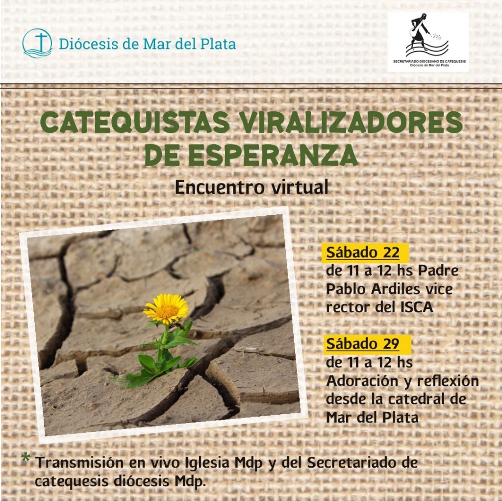 Asimismo, para este año, el Secretariado de Catequesis de la Diócesis de Mar del Plata realiza su tradicional encuentro para catequistas, adaptándose a los cuidados necesarios en tiempos de cuarentena. Para esto realizará el encuentro de forma virtual y en dos días distintos (de ahí la idea “2.0”), en vez de uno, tal cual a como nos tienen acostumbrados.