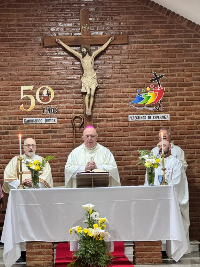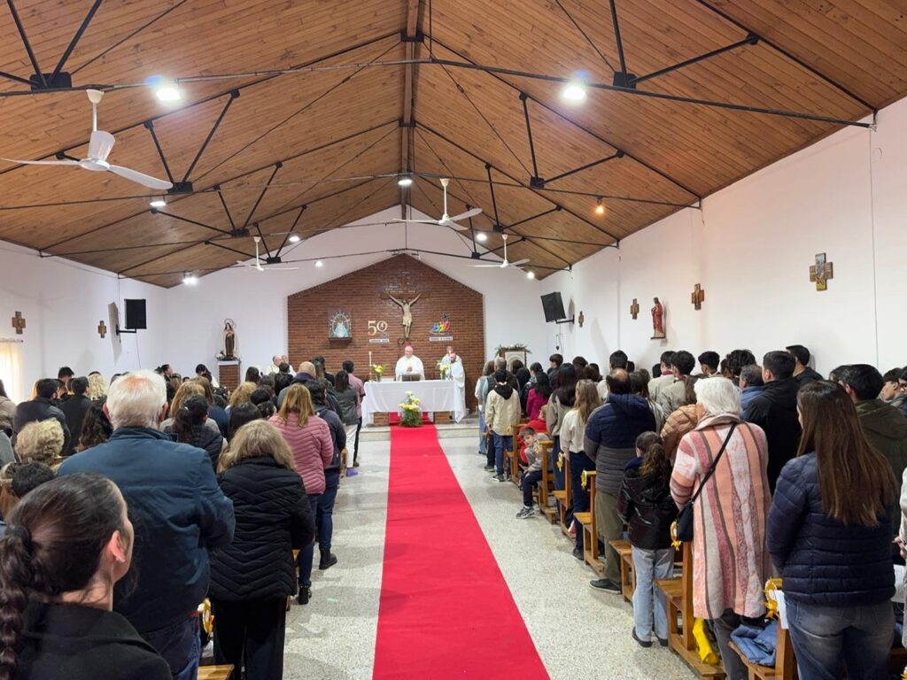 Este domingo 21 de septiembre, la parroquia Santa Teresita del Niño Jesús, de la localidad de Necochea, celebró sus 50 años de vida parroquial. Lo hizo con una Misa presidida por el obispo, monseñor Ernesto Giobando sj. y concelebrada por el párroco, presbítero Gonzalo Domench y por otros sacerdotes de la zona. Después hubo un festejo comunitario en el que los fieles de la parroquia celebraron con alegría las esperadas bodas de oro parroquiales.