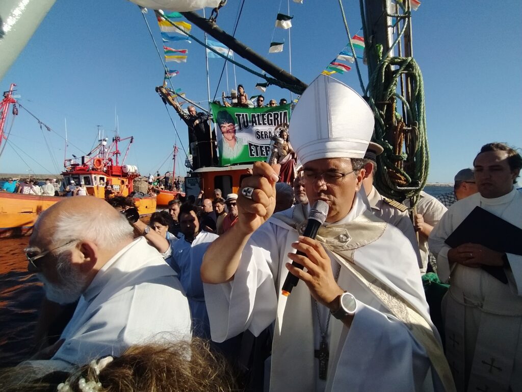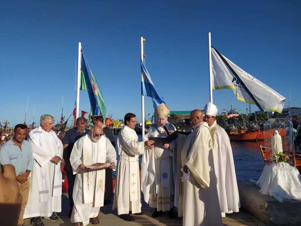 Además, SER Monseñor Adamczyk, reflexionó: “Pienso en los pescadores, marineros, las autoridades portuarias civiles y militares, y en todas las personas que viven al lado del mar y viven del mar. El trabajo de ustedes requiere sacrificios y renuncias; está ligado al peligro y a las dificultades. No siempre el mar es solo lindo y tranquilo. Hay un dicho que dice: “quien no sabe rezar que vaya al mar”. El mar nos permite descubrir la potencia de Dios y nos hace reconocer nuestros límites. Para conservar nuestra propia identidad y fe, para mantener vínculos familiares, para no ceder a la debilidad, debemos ser hombres y mujeres de oración”.