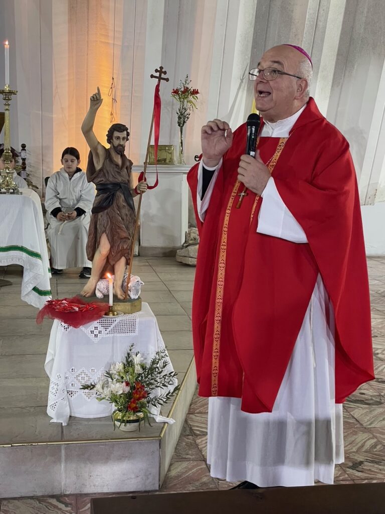 Durante la Misa, el Obispo reflexionó sobre el valor de vivir la fe con compromiso y entrega. Señaló que “creemos en Jesús, que es la verdad, y hoy celebramos a San Juan Bautista, que dio su vida por la verdad.” Asimismo explicó que la fe nos compromete en todos los momentos de la vida, y que siempre es preferible actuar bien aunque implique sufrimiento, antes que disfrutar haciendo el mal. Invitó a los fieles a aprender del testimonio de San Juan Bautista y a pedirle “un corazón que se sepa jugar por las cosas de Dios”, entendiendo que entregarse a Dios implica vivir con fe y entrega en cada instante.
