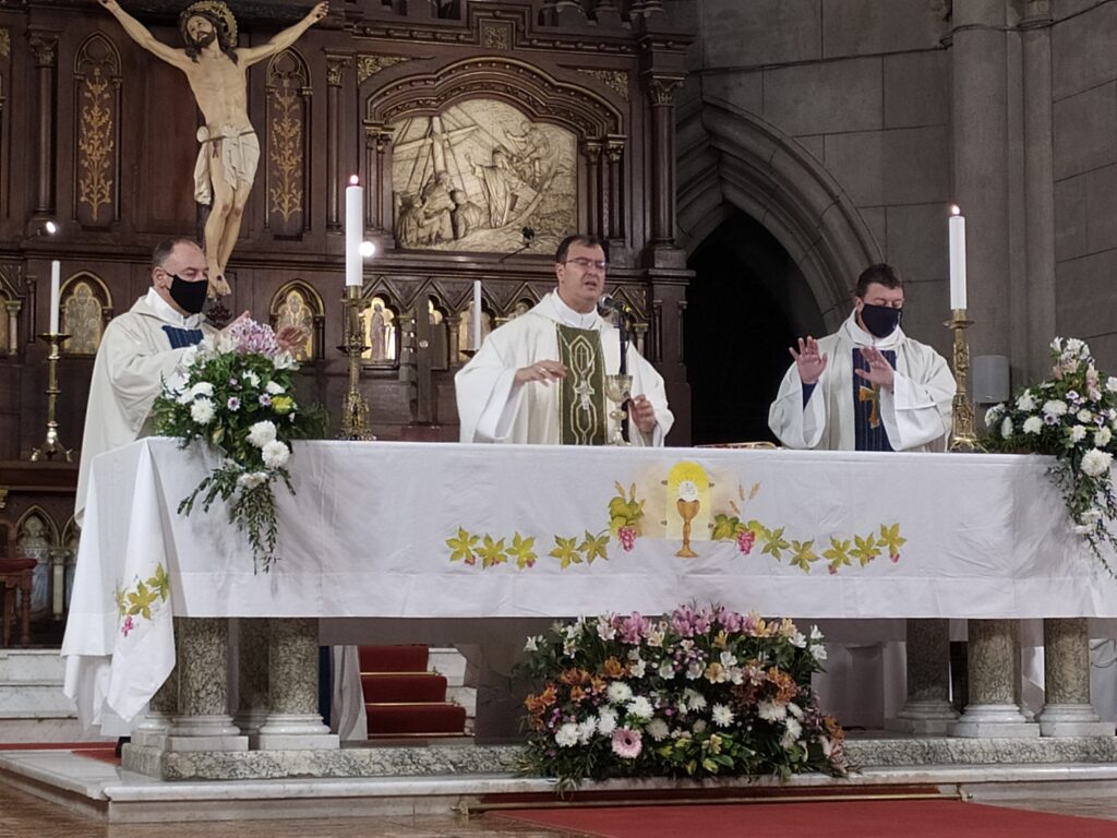 En la Misa de Acción de Gracias por el 4to. Aniversario de la ordenación episcopal, el padre obispo Gabriel Mestre presidió la eucaristía acompañado por los sacerdotes de distintas parroquias en la catedral de Mar de Plata.