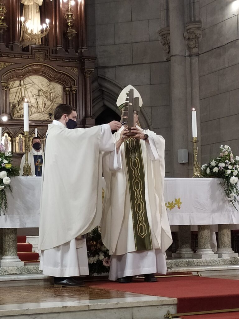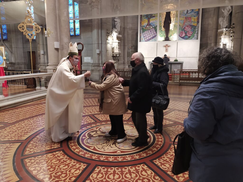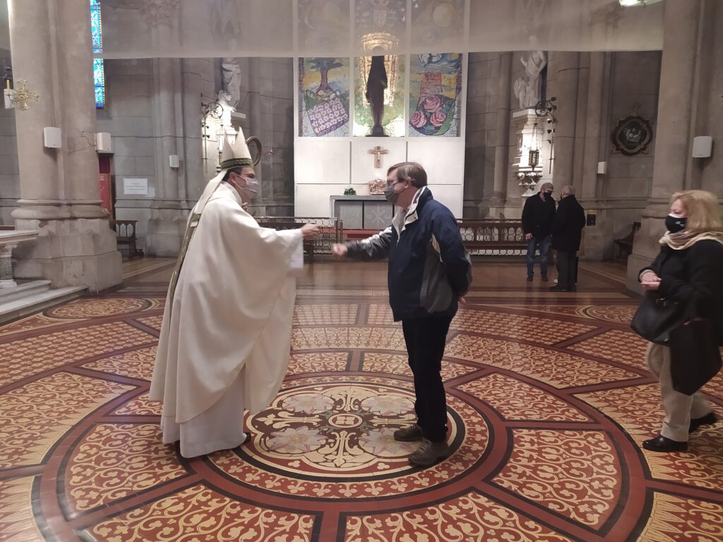 Al terminar la ceremonia el obispo bendijo a los presentes y a las personas que siguen la Misa por la redes con una reliquia de Ceferino Namuncurá, luego saludo a todos los presentes.