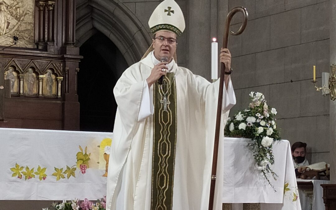 En la Misa de Acción de Gracias por el 4to. Aniversario de la ordenación episcopal, el padre obispo Gabriel Mestre presidió la eucaristía acompañado por los sacerdotes de distintas parroquias en la catedral de Mar de Plata.