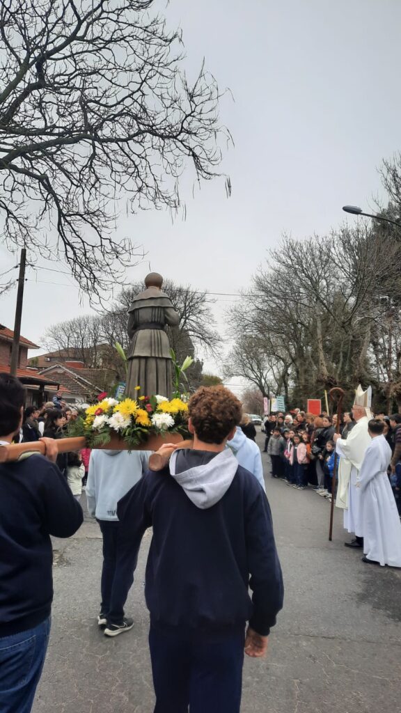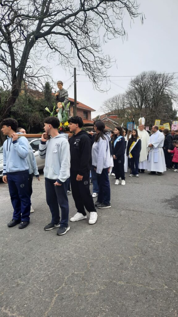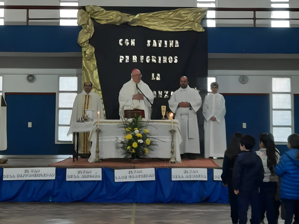 La celebración tuvo lugar este jueves 29 de agosto en su sede de calle Almafuerte y Sarmiento y comenzó con una procesión seguida por la Misa junto a los alumnos del Hogar – Escuela, quienes aportaron su alegría a través del canto y la participación en las consignas propuestas. La misma estuvo presidida por el obispo diocesano, monseñor Ernesto Giobando sj., acompañado por el vicario episcopal para la Educación, presbítero Juan Cruz Mennilli y el párroco de San Carlos Borromeo, presbítero Enrique Pio. La Eucaristía se celebró en el gimnasio del colegio, y comenzó con la recepción de la reliquia de la beata Savina, que fue colocada sobre el altar.