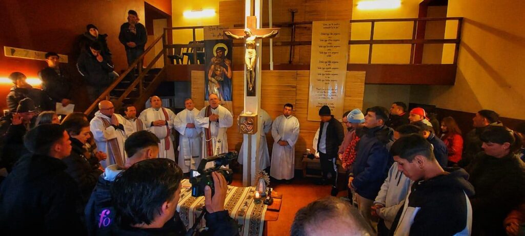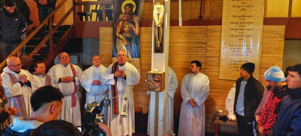 Monseñor Ernesto Giobando presidió la Eucaristía, en la que además se encontraban presentes el equipo que acompaña estas propuestas, y los integrantes del Centro Barrial Carlos Mugica, del Hogar de Cristo Don Orione, de la Casa Libertad y Misericordia y del “Galpón de Teresa” de Coronel Vidal.