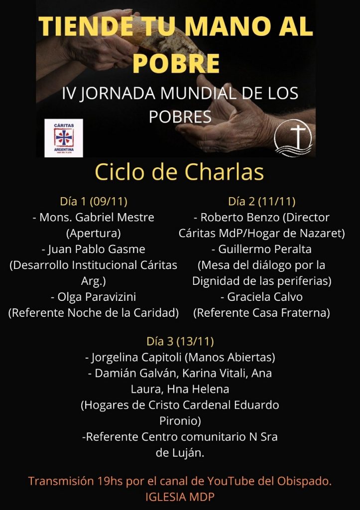 En Clave Sinodal y como Iglesia en salida CARITAS organiza un ciclo de Charlas en torno a la IV Jornada Mundial de los Pobres bajo el Lema ¨TIENDE TU MANO AL POBRE¨.