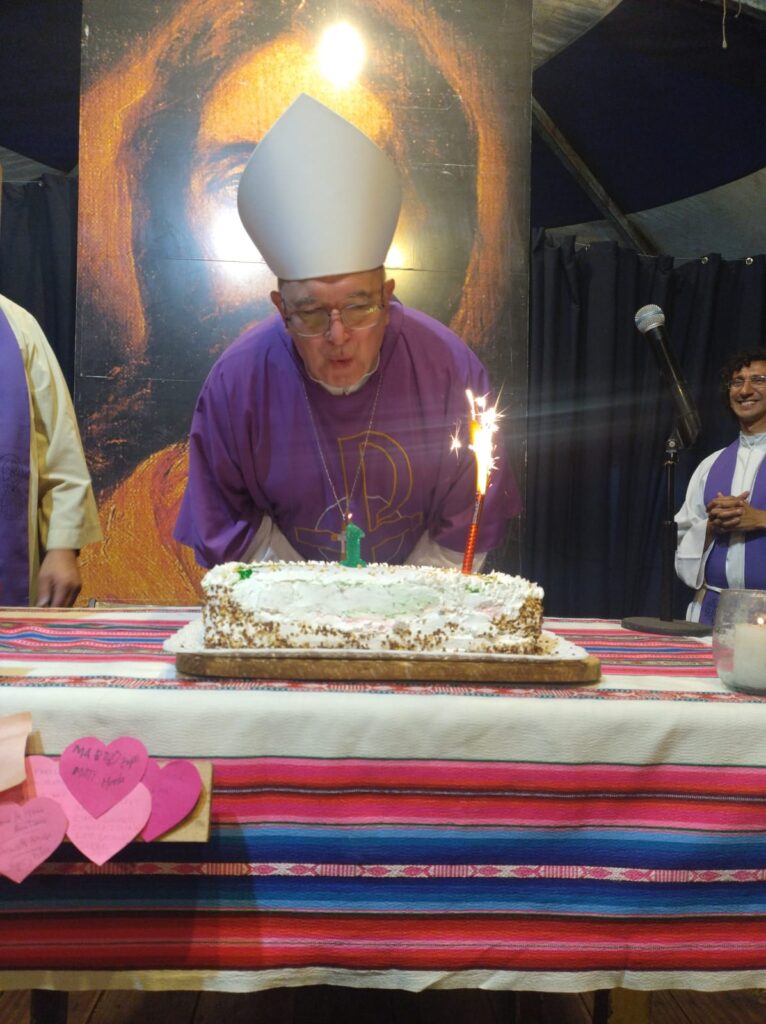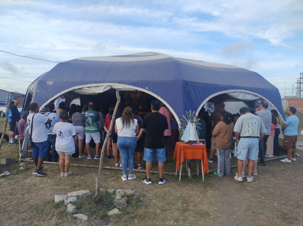 La comunidad recibió además al obispo diocesano, monseñor Ernesto Giobando, quien celebró su primer año de ministerio episcopal en la diócesis. Con su presencia y su palabra se dio cierre a esta semana de misión parroquial. En su homilía, el obispo destacó el sentido profundo de la experiencia vivida, definiendo la carpa como “la carpa del encuentro, donde María nos reúne y nos envía a misionar”.