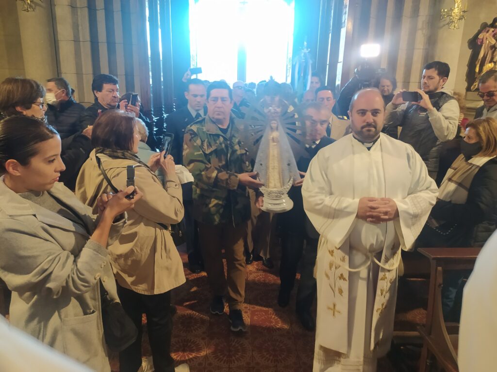 Gran alegría por la llegada a la Catedral de Mar de Plata de la Virgen de Luján que fue llevada a Malvinas durante el conflicto bélico y que acompañó a nuestros soldados. La Virgen fue el centro de las Misas de campaña en las Islas junto a los héroes de Malvinas.