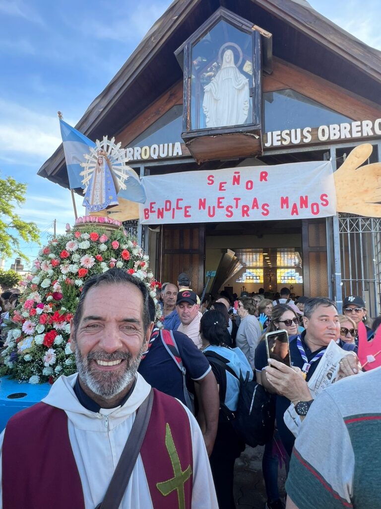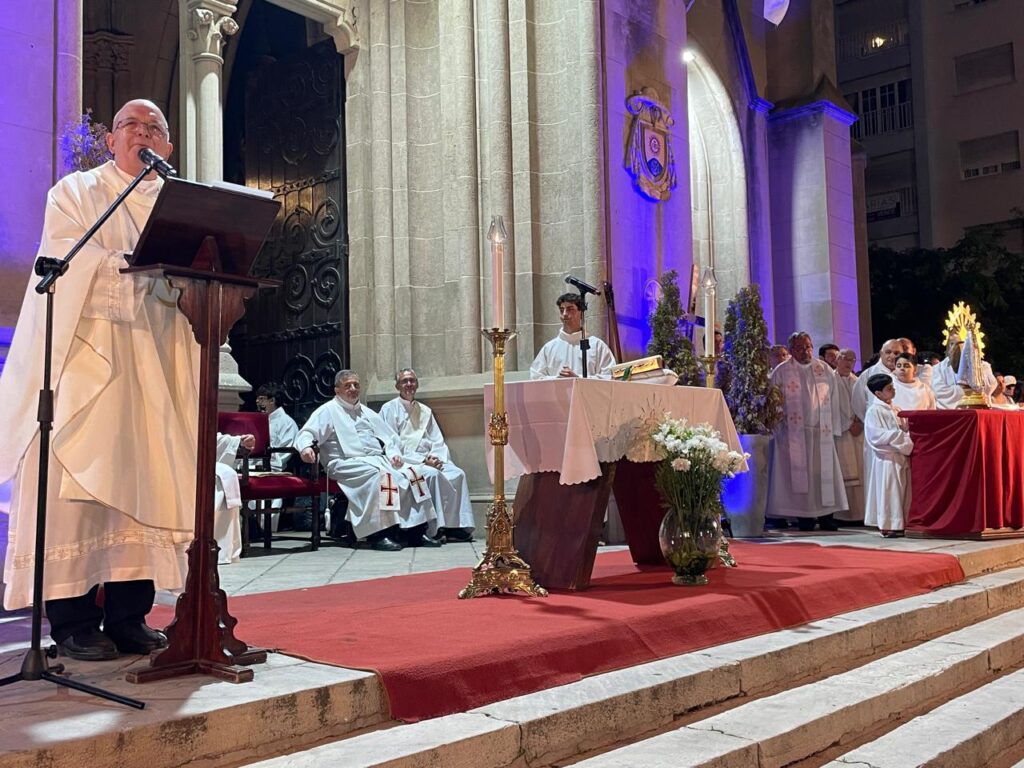 Finalmente, Mons. Giobando llamó a cultivar una cultura de paz y diálogo, señalando que “estamos acostumbrados a los monólogos, a las palabras huecas y sin respaldo ético. ‘Desarmar las palabras’ nos pide el Papa León, porque estamos acostumbrándonos a la violencia y a la descalificación, hay que habitar las redes y transmitir palabras de aliento y cercanía: ‘donde haya odio, pongamos amor’, rezamos con San Francisco de Asís.” Invitó también a vivir la reconciliación dentro de la comunidad, recordando que “aprendamos el lenguaje de la reconciliación: no sólo disculpas, sino perdón. Perdón por la falta de comunión, perdón por no ser artesanos de la unidad. Que María nos conceda la gracia de la unidad en el amor.”