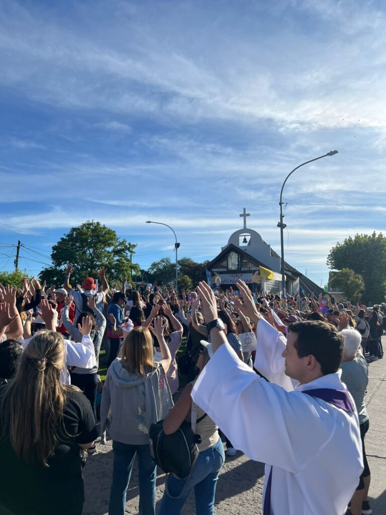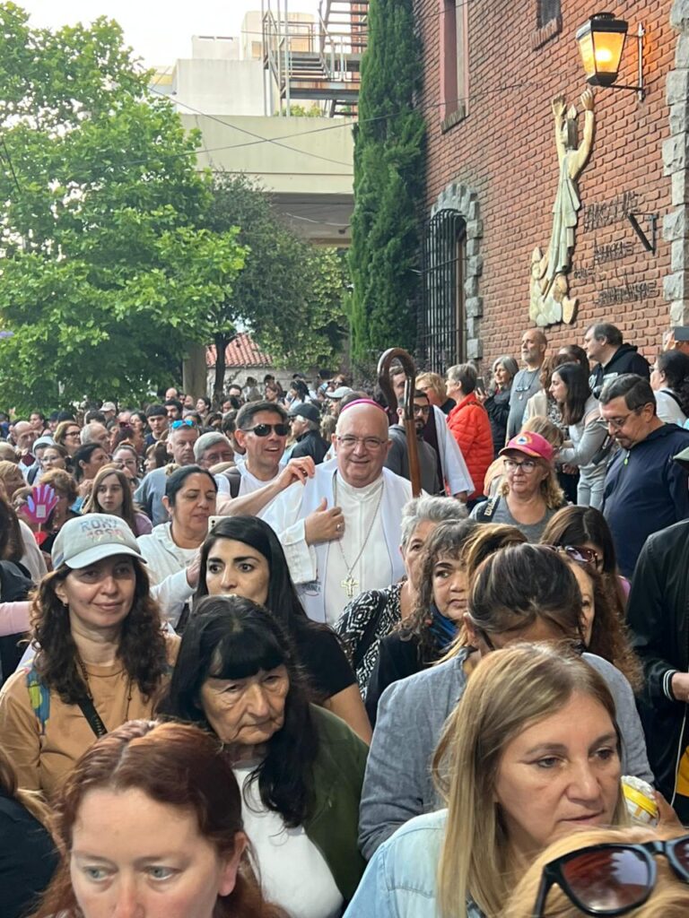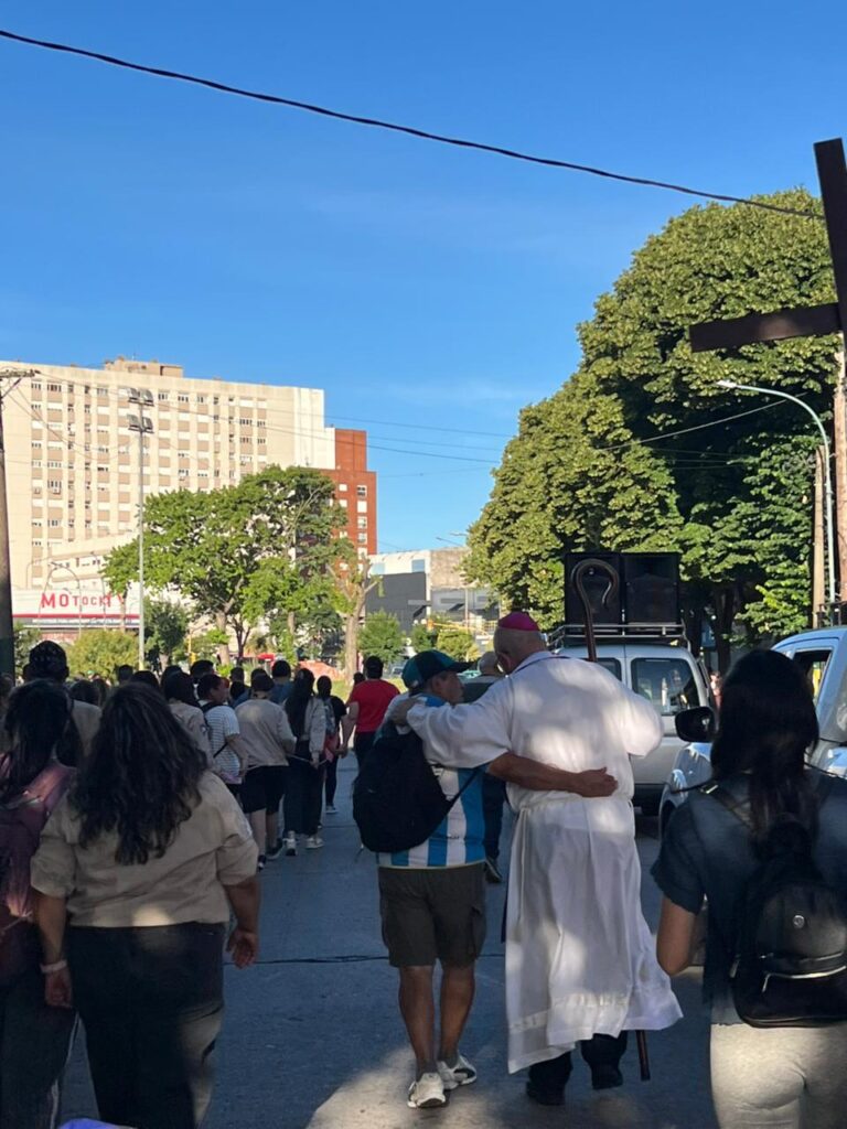 En continuidad con ese llamado a caminar en fe, el obispo expresó que “‘Alégrate María, llena eres de gracia’, benditas palabras que resuenan en esta Marcha de la Esperanza: ¡Alégrate María! ¡Alégrate Iglesia de Mar del Plata, el Señor está con nosotros! Nadie nos quitará la esperanza, esa esperanza que no defrauda, la que nos hace caminar como Pueblo de Dios en este Año Santo, paso a paso, a veces con dolor, otras veces corriendo al encuentro y al abrazo.” A su vez, recordó que “una Iglesia que camina es una Iglesia en salida, como nos decía el querido Papa Francisco, un caminante, un callejero de las periferias, allí tenemos que ir, en esas encrucijadas debemos estar: esa es nuestra misión.”