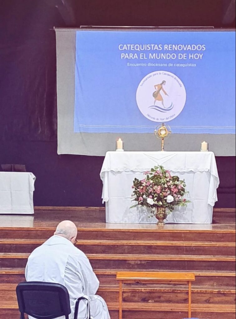 A continuación, participaron de un momento de oración ante el Santísimo Sacramento. Allí monseñor Ernesto Giobando guió el momento de oración, ofreciendo una contemplación que invitó a los participantes “a ir a Nazaret”.