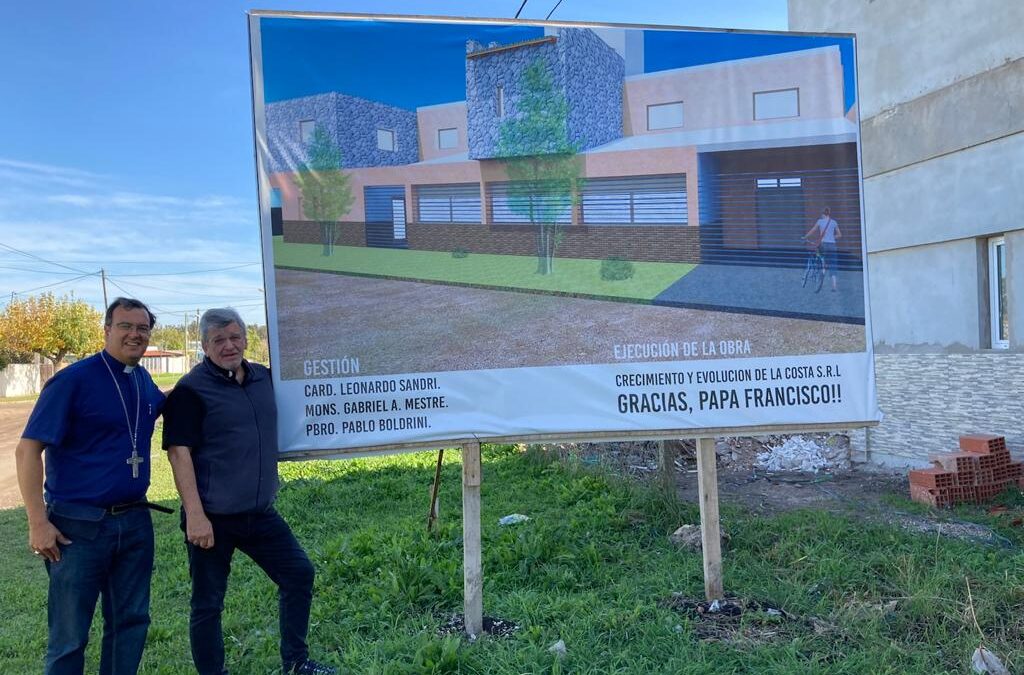 Junto al párroco de la parroquia San Andrés el pbro. Pablo Boldrini el padre obispo Gabriel recorrió la futura Casa de la Caridad, que es posible gracias a los aportes de la Fundación Papal, cuyas finalidades serán: Casa de retiros y encuentros, Caritas y Centro de atención de día a mujeres afectadas por la violencia de genero