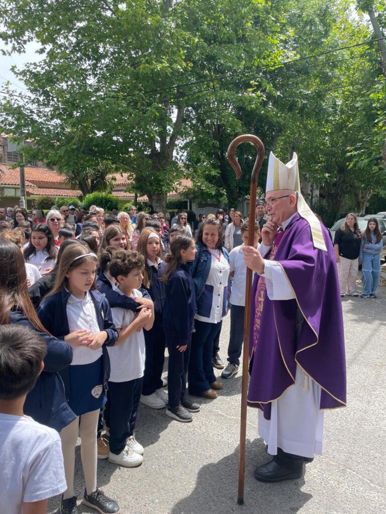 Tomando el lema de la fiesta, exhortó a los presentes a “echar las redes de la esperanza”, y agregó: “Hoy también tenemos redes en nuestras manos: el celular. Que en esas redes sembremos esperanza y no confusión ni división.”