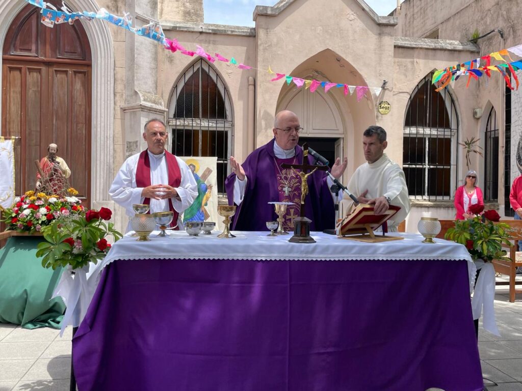 La comunidad parroquial de San Andrés Apóstol celebró este domingo 30 su fiesta patronal con una multitudinaria misa y una procesión por las calles de Miramar. La celebración fue presidida por el obispo diocesano, monseñor Ernesto Giobando SJ, y concelebrada por el párroco, presbítero Luis Alboniga.