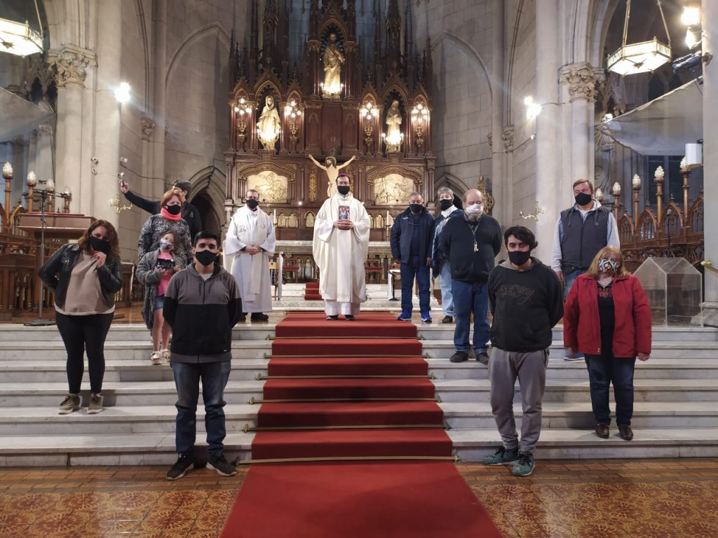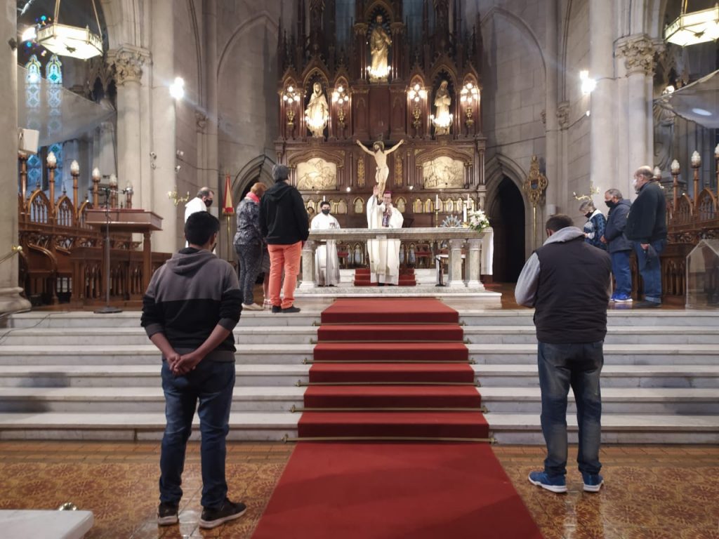 Misa del vienes 9 de octubre. Preside el Obispo de Mar del Plata Mons Gabriel Mestre y concelebran los pbros Fabián Yañez y Cristian Basterrechea. Participan unos pocos fieles de la comunidad Cura Brochero
