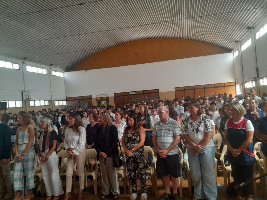 Participaron autoridades educativas, entre ellas el asesor Esteban Chiarle, en representación del director provincial de la Dirección de Educación de Gestión Privada (DIEGEP), Javier Ranaldi, junto a inspectores, representantes legales y directivos de distintas instituciones. También estuvieron presentes alumnos de la escuela anfitriona y pequeñas delegaciones de otros establecimientos de la zona, con sus abanderados y escoltas.