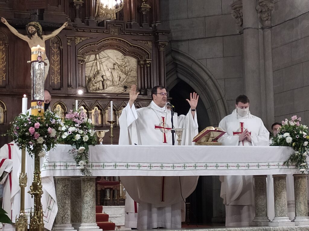 Queridas hermanas y hermanos, todos los cantos de esta Misa tienen letra de mons. Enrique Rau: entrada, momento de las ofrendas, procesión de comunión y salida. La riqueza humana, espiritual, teológica y pastoral de nuestro primer obispo nos desafía y estimula hoy. Que una y mil veces, de la mano de la Bienaventurada Virgen María y del glorioso patriarca San José, juntos como Iglesia Diocesana podamos cantar: