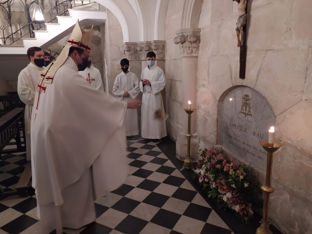 Santa Misa por el 50 aniversario de la pascua de Mons. Enrique Rau. Homilía de Mons. Mestre junto al clero diocesano. Sentido responso ante la tumba del primer obispo en la Cripta de la Iglesia Catedral.