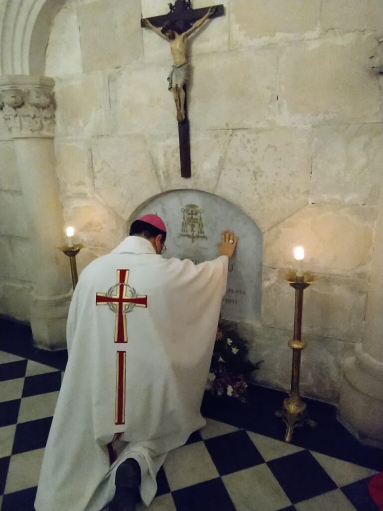 Al término de la ceremonia el padre obispo Gabriel descendió a la Cripta de la Catedral y realizó un sentido responso en la tumba que guardan los restos del primer obispo diocesano.