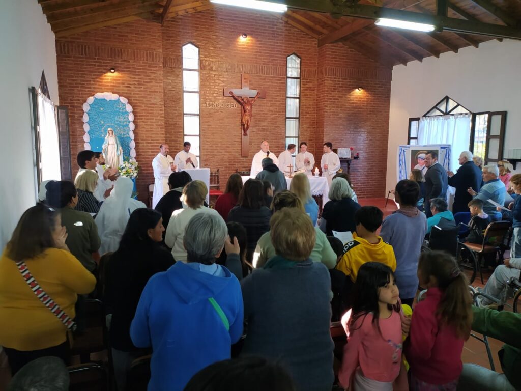 Acompañaron la celebración los sacerdotes, padres Bachi y Juan Cruz. También estuvo presente el intendente Guillermo Montenegro, colaboradores de las hermanas y vecinos.