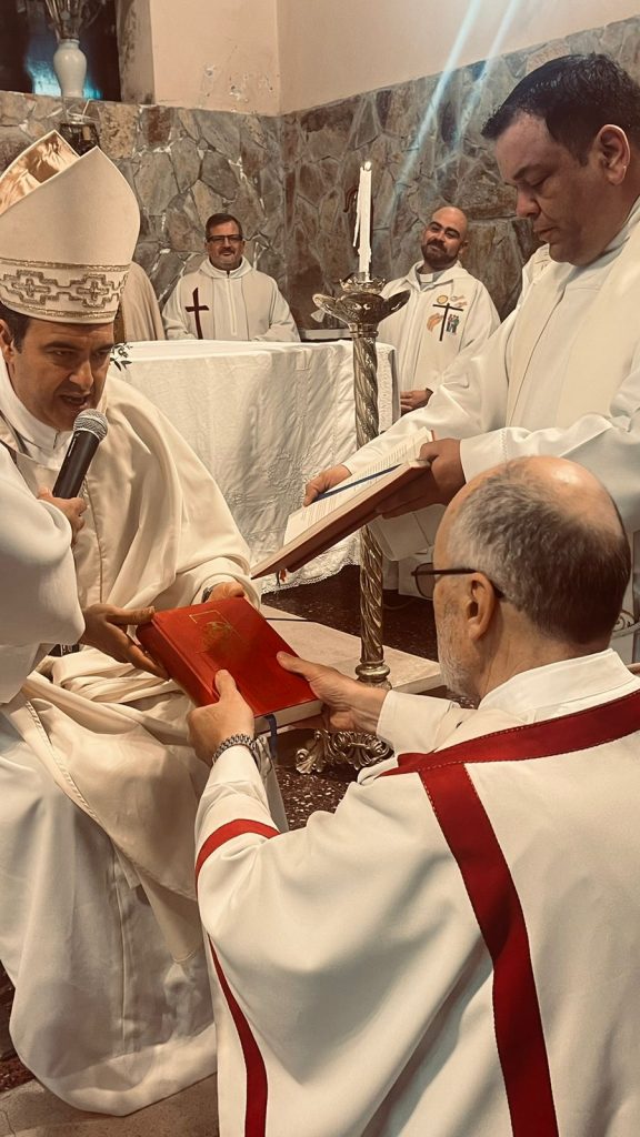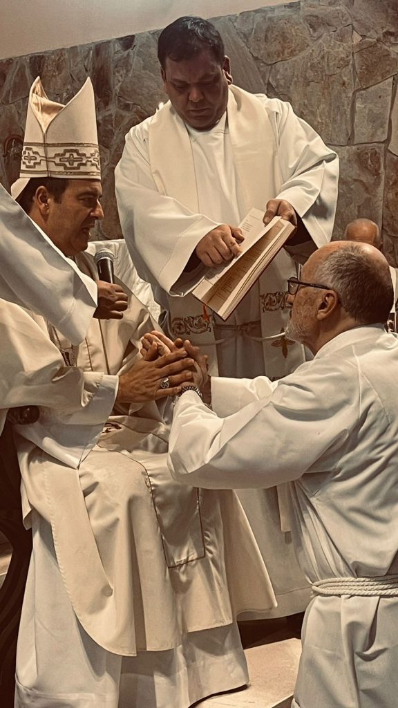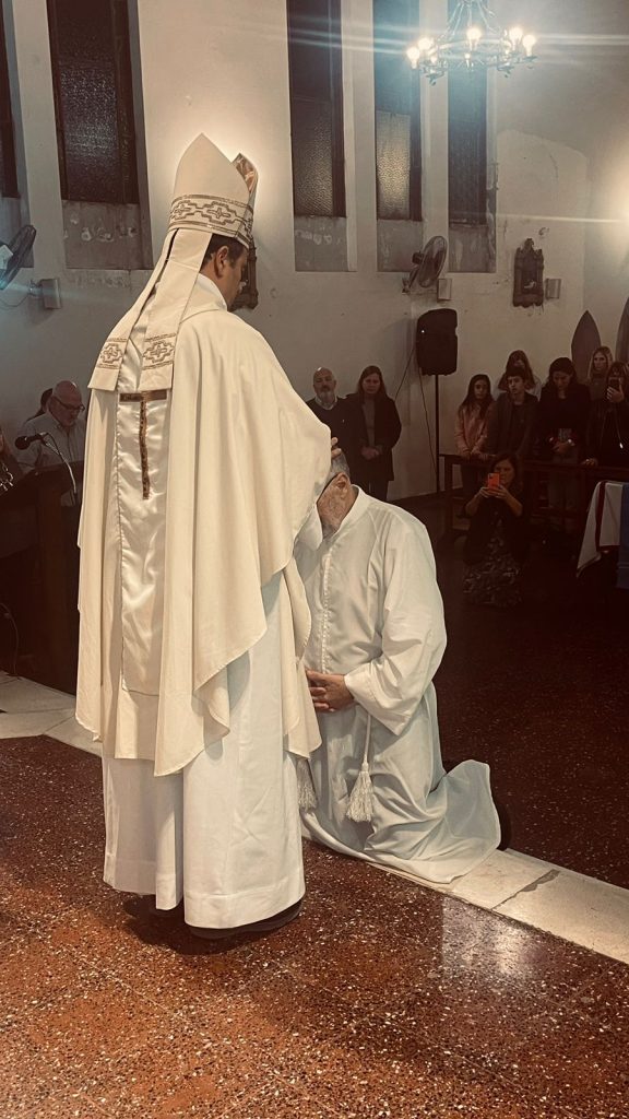 Este viernes en la Parroquia Nuestra Señora de Lourdes de Necochea el padre obispo Gabriel realizó la imposición de manos para ordenar como diácono permanente a Fernando Roca, casado y con familia, que se incorpora al servicio ministerial en la Iglesia Diocesana.