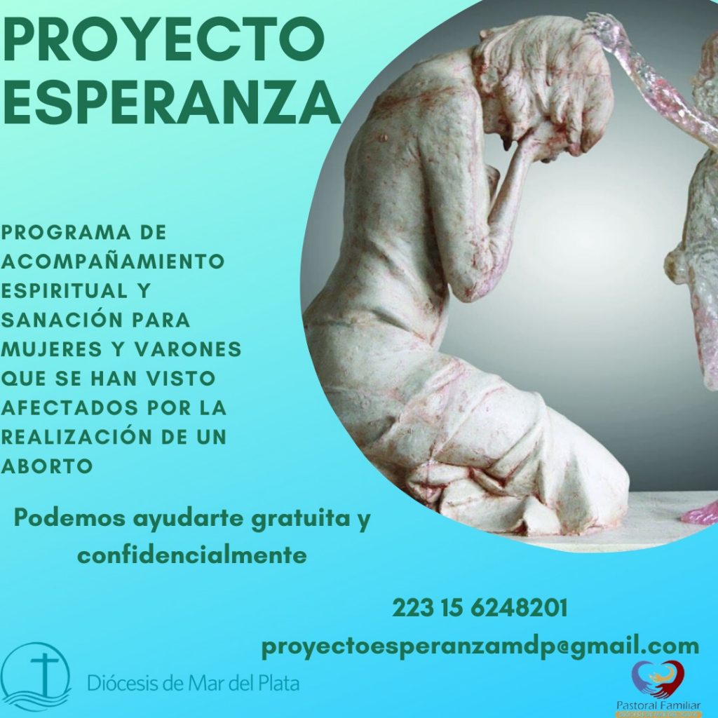 El Proyecto Esperanza Mar del Plata tiene como objetivo el acompañamiento espiritual para la sanación de todas las personas que lo soliciten, mujeres y varones, creyentes o no, que hayan sido afectados por la realización de un aborto.